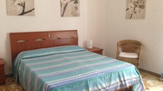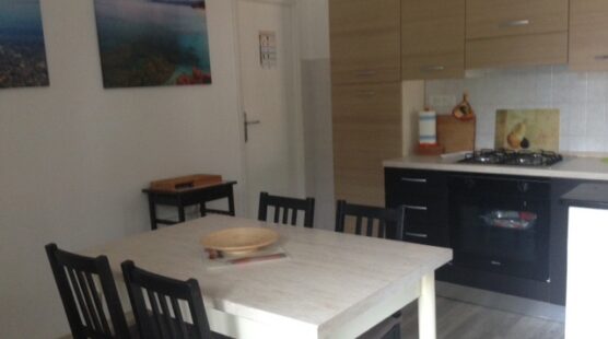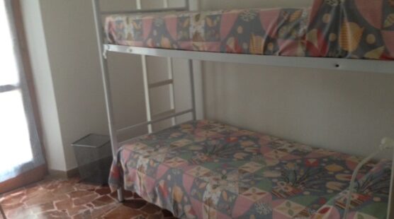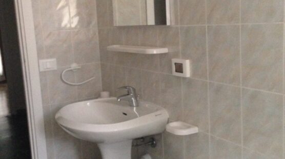 (95 mq. Ca) Ampio soggiorno/zona pranzo, cucina abitabile, camera matrimoniale, camera matrimoniale con 3° letto, cameretta con letto a castello, doppi servizi di cui uno con doccia e l’ altro con vasca. Balcone. Spazio esterno al pian terreno ad uso esclusivo e nr. 2 posti auto.